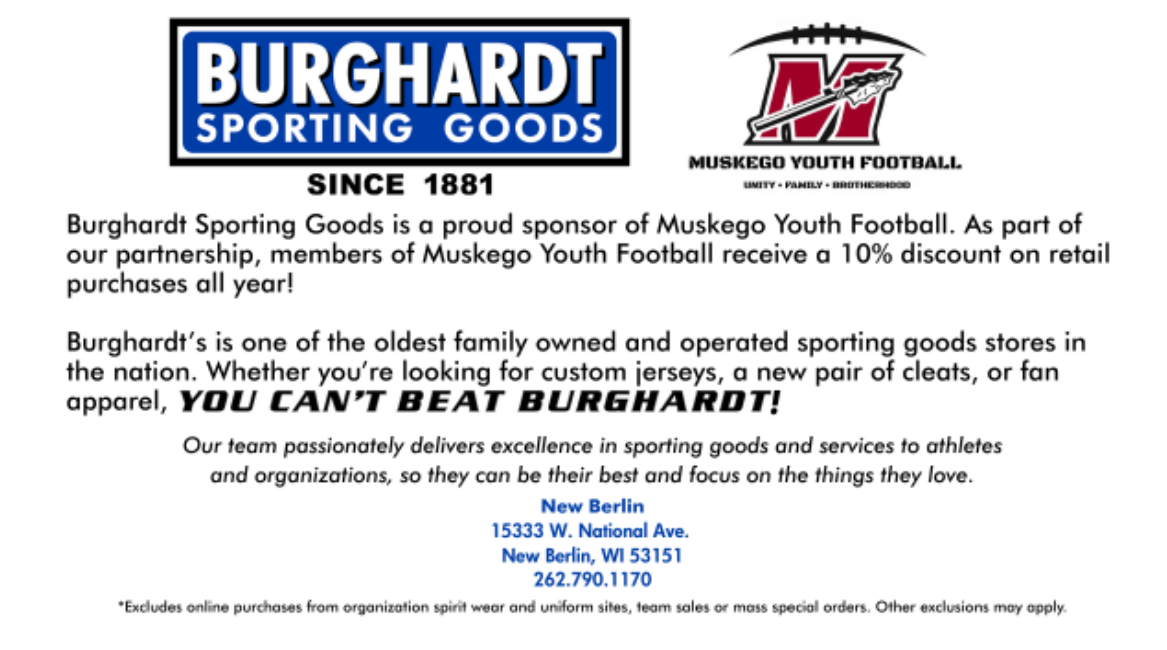 Our primary vendor is Burghardt Sporting Goods in New Berlin, though we also partner with other local businesses for select specialty items. Supporting local vendors remains an important part of MYF’s mission.
